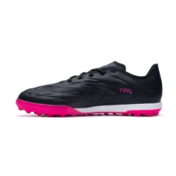 Zapatilla de fĂștbol adidas Copa Pure.1 Turf para adultos. Zapatillas de piel para utilizar en campos de moqueta, cĂ©sped artificial, cemento o tierra. Zapatillas de gama alta en color Black-White-Shock Pink para jugadores clĂĄsicos.