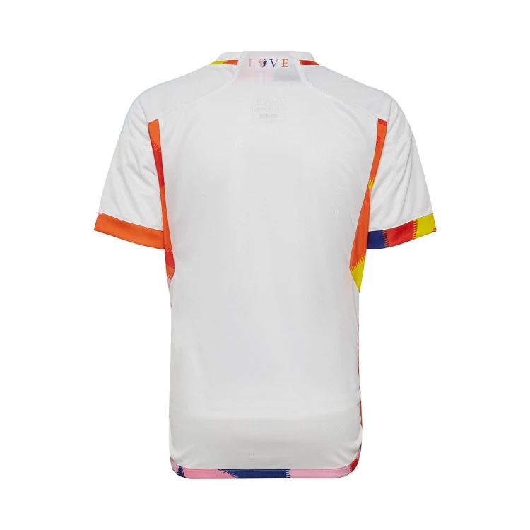 Camiseta segunda equipación de la Selección Belga para la World Cup 2022. Creada para destacar en el campeonato de fútbol más importante del mundo. La nueva camiseta de la selección belga de fútbol se inspira en los fuegos artificiales del festival de música Tomorrowland. La parte exterior de la nuca luce la inscripción LOVE y el logotipo de Tomorrowland. Creada para seguidores del fútbol y los festivales, presenta un diseño transpirable con la tecnología AEROREADY que mantiene la piel seca en todo momento.