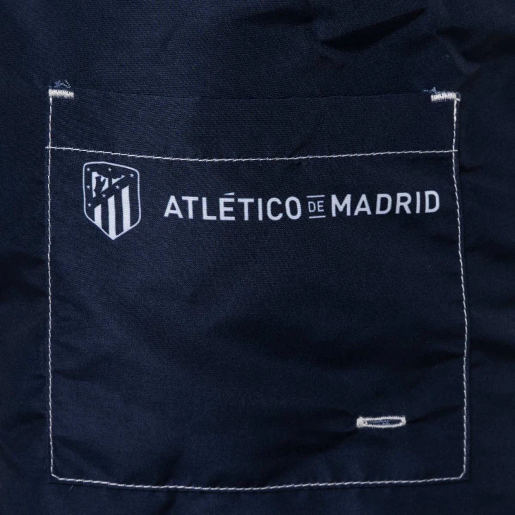 Cintura elástica con cordón ajustables, bolsillos laterales y el escudo del equipo. En color Azul Marino y una franja blanca lateral. Confeccionado con tejido de secado rápido.